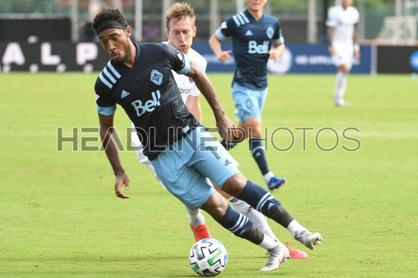 Vancouver Whitecaps defender Cornelius, Derek #13 makes a run during the MLS is Back Tournament at ESPN Wild World of Sports in Orlando Florida on Wednesday July 23, 2020. Photo Credit: Marty Jean-Louis