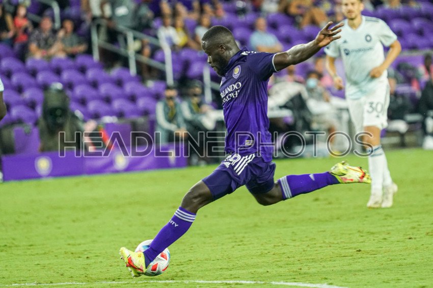 Orlando, Florida, USA, August 21, 2021, Orlando City SC forward Benji Michel #19 shoots and scores against Chicago Fire at Exploria Stadium. (Photo Credit: Marty Jean-Louis)