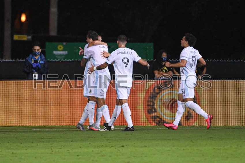 Minnesota United players celebrate goal during the MLS is Back Tournament at ESPN Wild Wolrd of Sport in Orlando Florida USA on Monday July 27. 2020. Photo Credit: Marty Jean-Louis