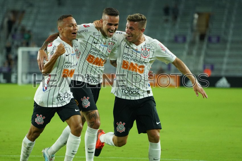 Corinthian players celebreate first goal at Exploria Stadium in Orlando Florida on Wednesday January 15, 2020. Photo Credit: Marty Jean-Louis