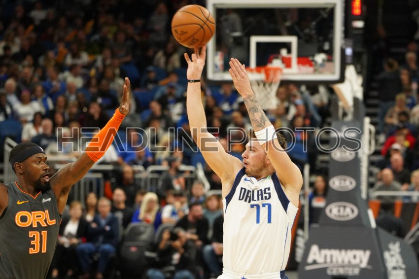 Dallas Mavericks player Luka Doncic #77 shoots a three during the game at the Amway Center in Orlando Florida on Friday February 21, 2020. Photo Credit: Marty Jean-Louis