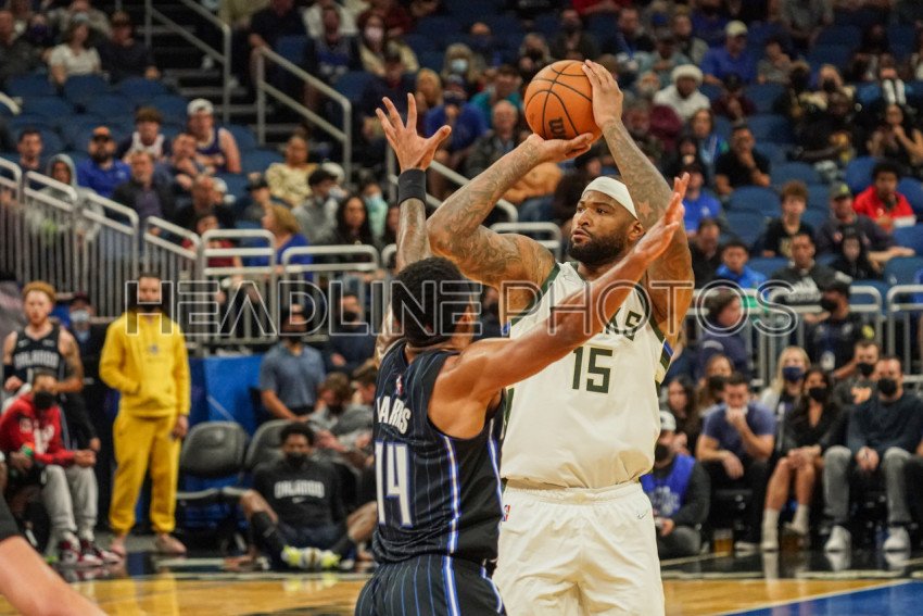 Orlando, Florida, USA, December 28, 2021, Milwaukee Bucks Center DeMarcus Cousins #15 takes a shot during the second half at the Amway Center. (Photo Credit: Marty Jean-Louis)