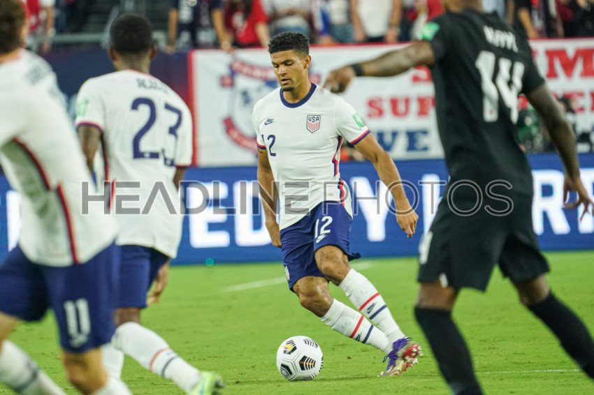 Nashville, Tennessee, USA, September 5, 2021, USA player Miles Gordon Robinson #12 runs with the ball during the 2022 World Cup Qualifier at Nissan Stadium. (Photo Credit: Marty Jean-Louis)
