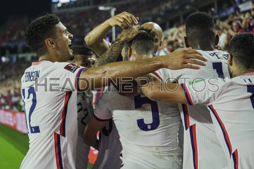 Nashville, Tennessee, USA, September 5, 2021, USA players celebrate after the goal during the 2022 World Cup Qualifier at Nissan Stadium. (Photo Credit: Marty Jean-Louis)