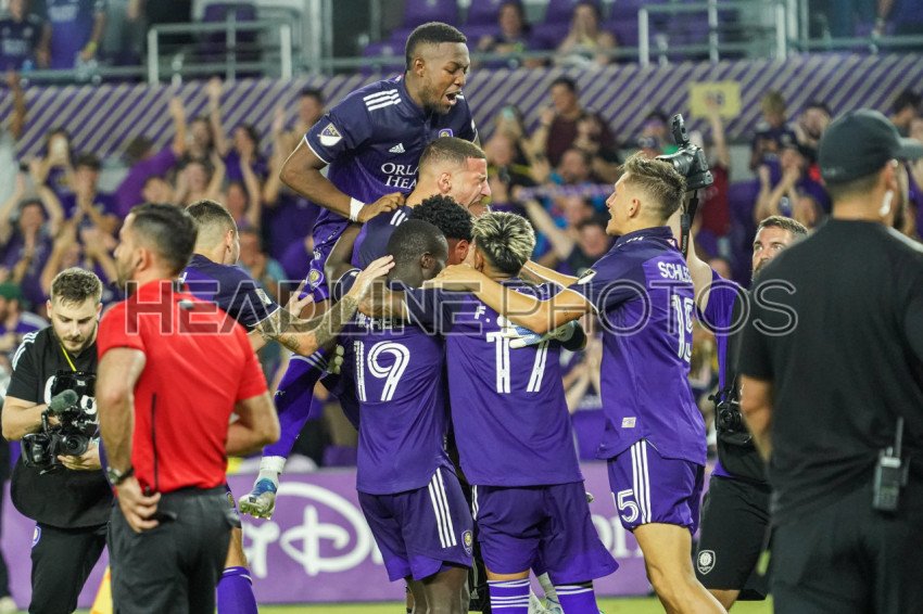 Orlando, Florida, USA, June 29, 2022, Orlando City players celebrate win during the US Open Cup at Exploria Stadium (Photo Credit: Marty Jean-Louis)