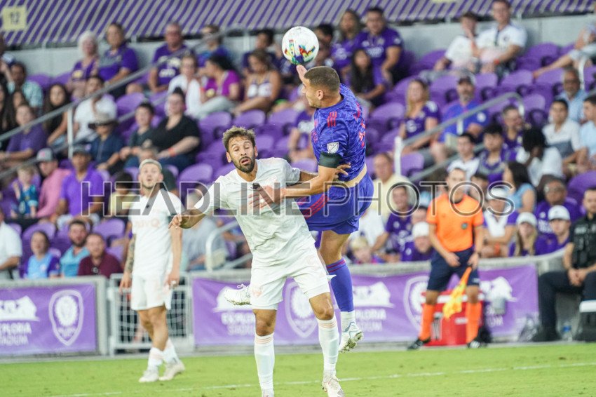 Orlando, Florida, USA, May 28, 2022, Orlando City SC forward Ercan Kara #9 makes a header in the first half at Exploria Stadium. (Photo Credit: Marty Jean-Louis)