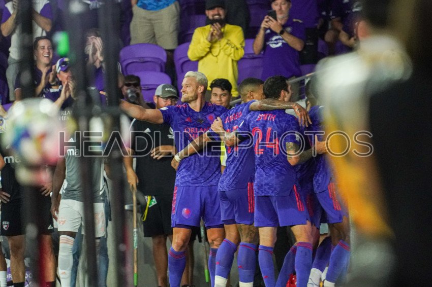 Orlando, Florida, USA, May 28, 2022, Orlando City SC players celebrate first goal of the match in the first half at Exploria Stadium. (Photo Credit: Marty Jean-Louis)