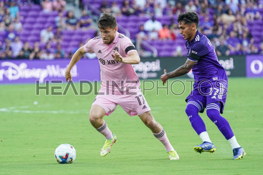 Orlando, Florida, USA, May 25, 2022, Inter Miami forward Indiana Vassilev #17 makes a run as Facundo Torres #17 adds pressure in the first half at Exploria Stadium. (Photo Credit: Marty Jean-Louis)