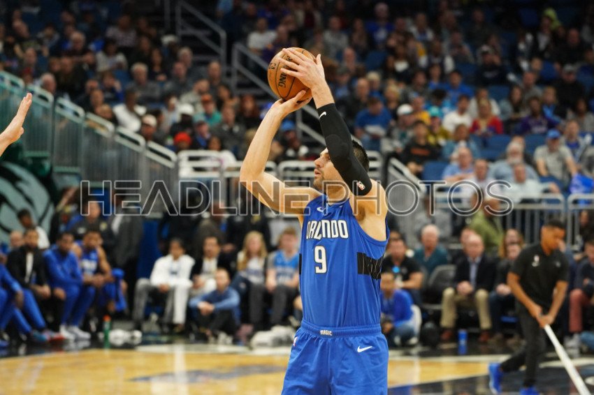 Orlando Magic player Nikolai Vucevic #9 shoots a three point at the Amway Center in Orlando Florida on Sunday January 26, 2020. Photo Credit: Marty Jean-Louis