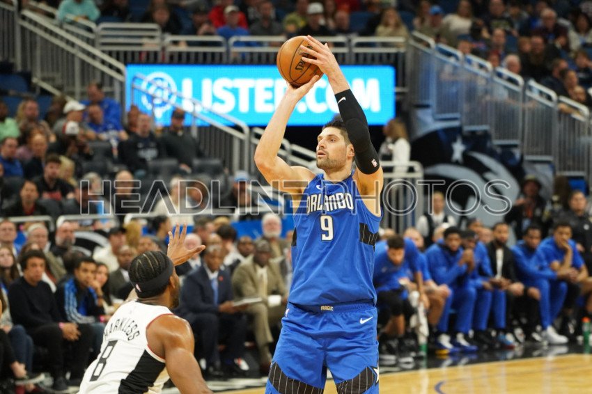 Orlando Magic player Nikolai Vucevic #9 shoots a three point at the Amway Center in Orlando Florida on Sunday January 26, 2020. Photo Credit: Marty Jean-Louis