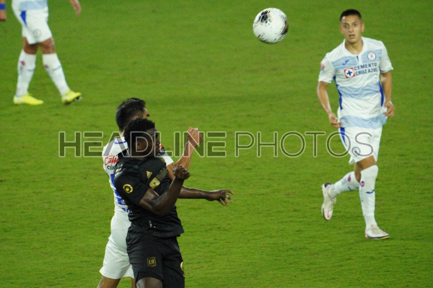 December 16, 2020, Orlando, Florida, USA, LAFC and Cruz Azul players fight for the header during the CONCACAF quarter finals. (Photo Credit: Marty Jean-Louis)