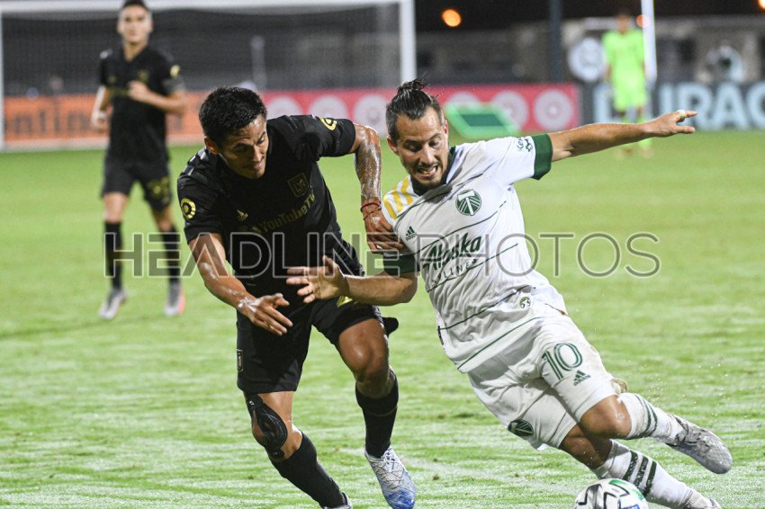 Portland Timbers midfielder Blanco, Sebastian #10 fight to keep the ball during the MLS is Back Tournament at ESPN Wild World of Sport in Orlando Florida USA. Photo Credit: Marty Jean-Louis