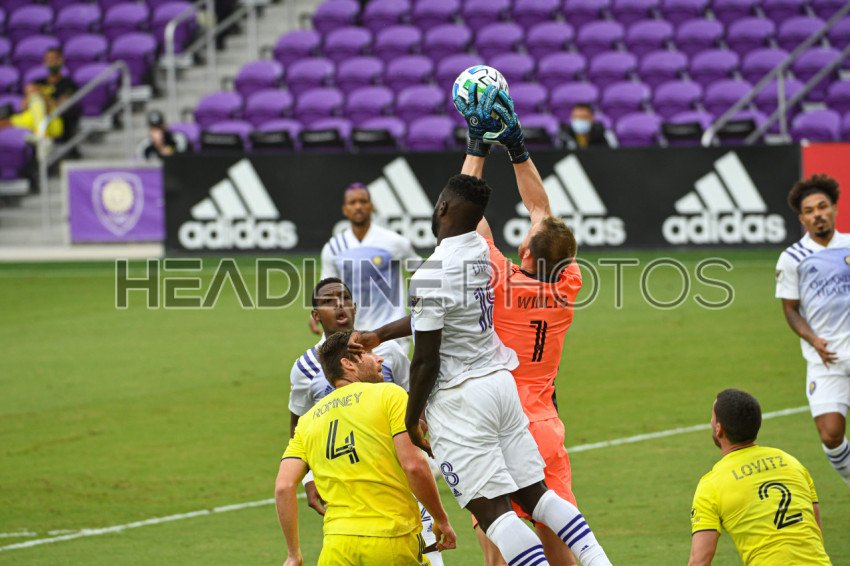 Nashville SC Goalkeeper Willis #1 makes a save at Exploria Stadium on Sunday November 8, 2020 in Orlando Florida USA. Photo Credit: Marty Jean-Louis