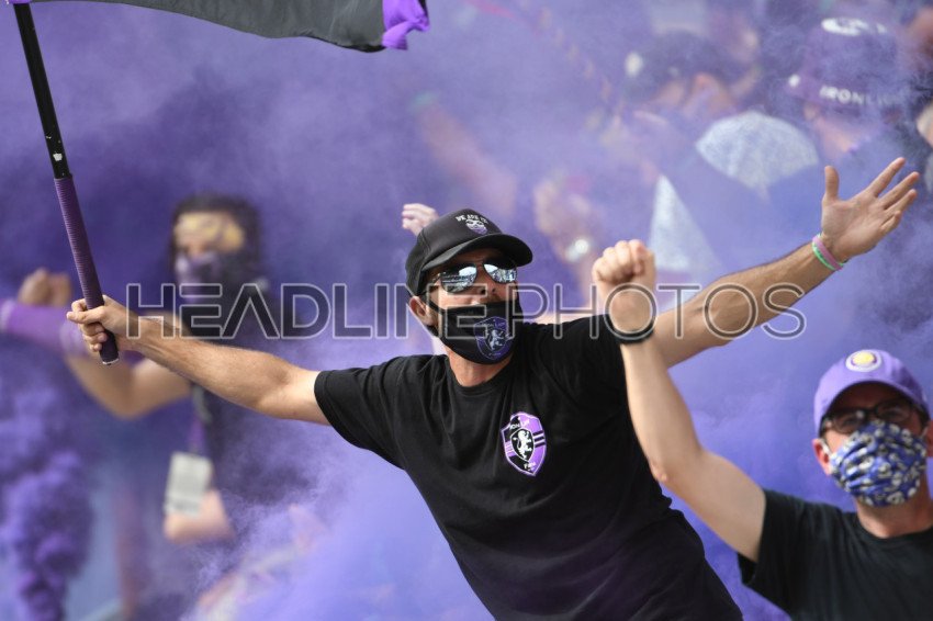 Orlando City SC fans celebrate first playoff win at Exploria Stadium in Orlando Florida on Saturday November 21, 2020. Photo Credit: Marty Jean-Louis