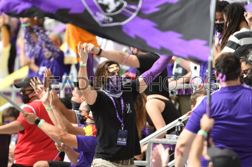 Orlando City SC fans celebrate first playoff win at Exploria Stadium in Orlando Florida on Saturday November 21, 2020. Photo Credit: Marty Jean-Louis