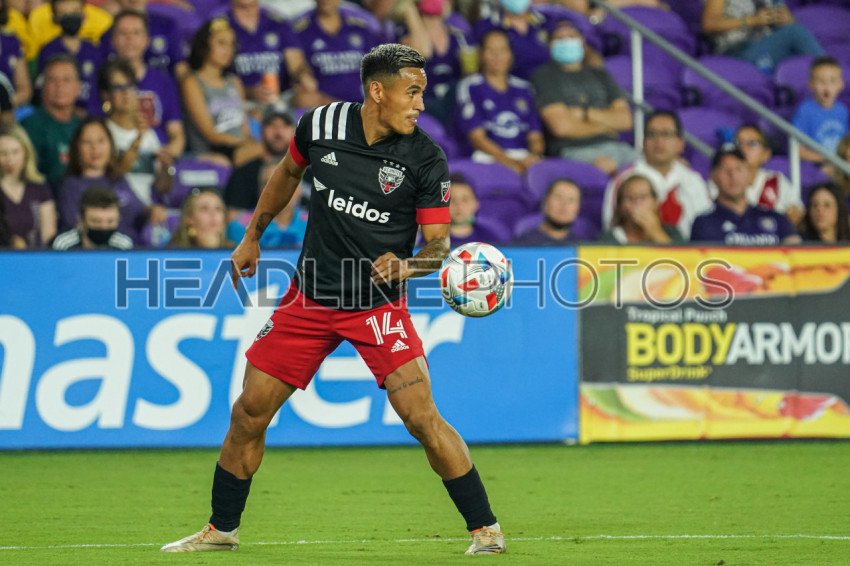 Orlando, Florida, USA, October 2, 2021, DC United Midfielder Andy Najar #14 eye teammate to make a pass at Exploria Stadium. (Photo Credit: Marty Jean-Louis)
