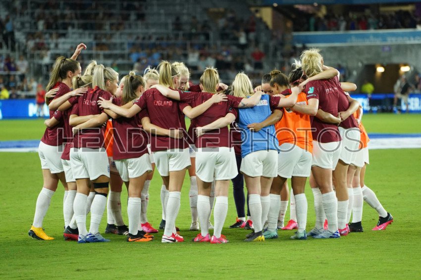 England women's national football team huddles before the match during the 2020 SheBelieves Cup at Exploria Stadium in Orlando Florida on Thursday March 5, 2020. Photo Credit: Marty Jean-Louis