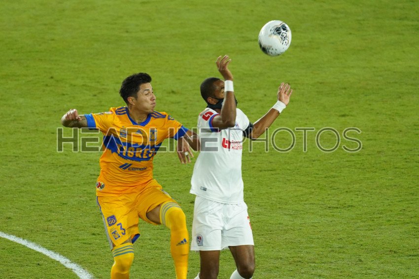 Orlando, Florida, USA, December 19, 2020, Tigres UANL and CD Olimpia players fight for the header during the CONCACAF Semi Final. (Photo Credit: Marty Jean-Louis)