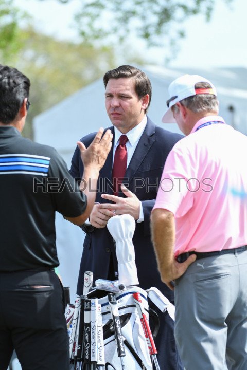 Florida Governer Ron DeSantis speaking with players during the opening event at the 2020 Arnold Palmer Invitational at Bay Hill in Orlando Florida on Wednesday March 4, 2020. Photo Credit: Marty Jean-Louis