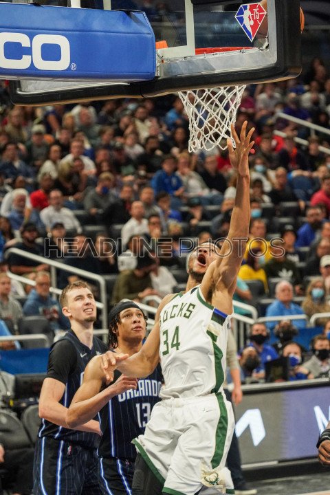 Orlando, Florida, USA, December 28, 2021, Milwaukee Bucks forward Giannis Antetokounmpo #34 attempt to make a basket during the second half at the Amway Center. (Photo Credit: Marty Jean-Louis)