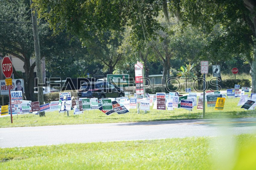 Election candidates place signs at the Supervise of Elections Office in Sanford Florida USA on Thursday October 29, 2020. Photo Credit: Marty Jean-Louis