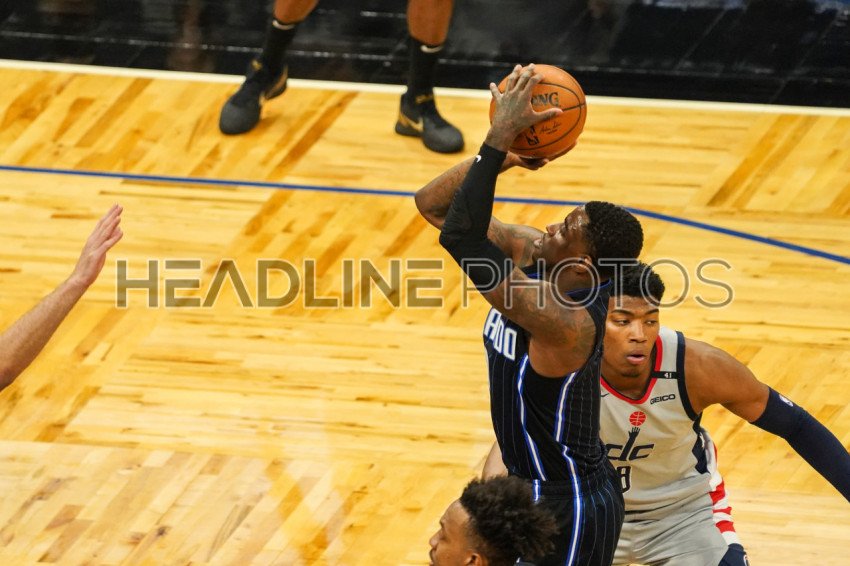 Orlando, Florida, USA, April 7, 2021, Orlando Magic player Dwayne Bacon takes a shot against the Washington Wizards at the Amway Center (Photo Credit: Marty Jean-Louis)