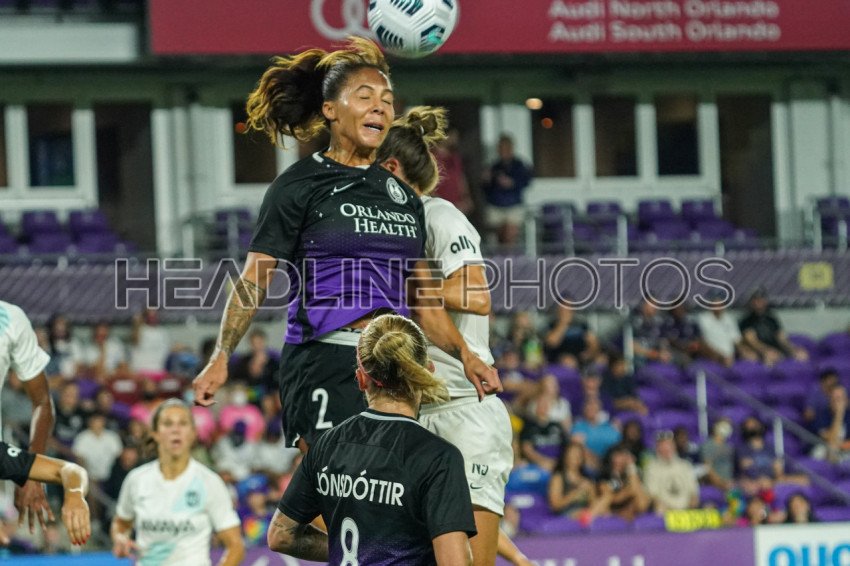 Orlando, Florida, USA, October 9, 2021, Orlando Pride player Sydney Leroux #2 wins the header during the match at Exploria Stadium. (Photo Credit: Marty Jean-Louis)