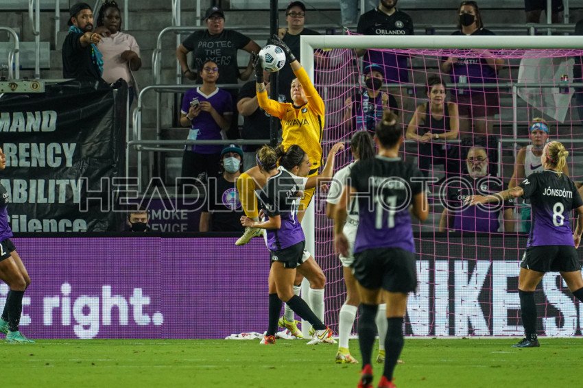 Orlando, Florida, USA, October 9, 2021, Gotham FC Goalkeepr Kailen Sheridan #1 makes a save during the first half at Exploria Stadium. (Photo Credit: Marty Jean-Louis)