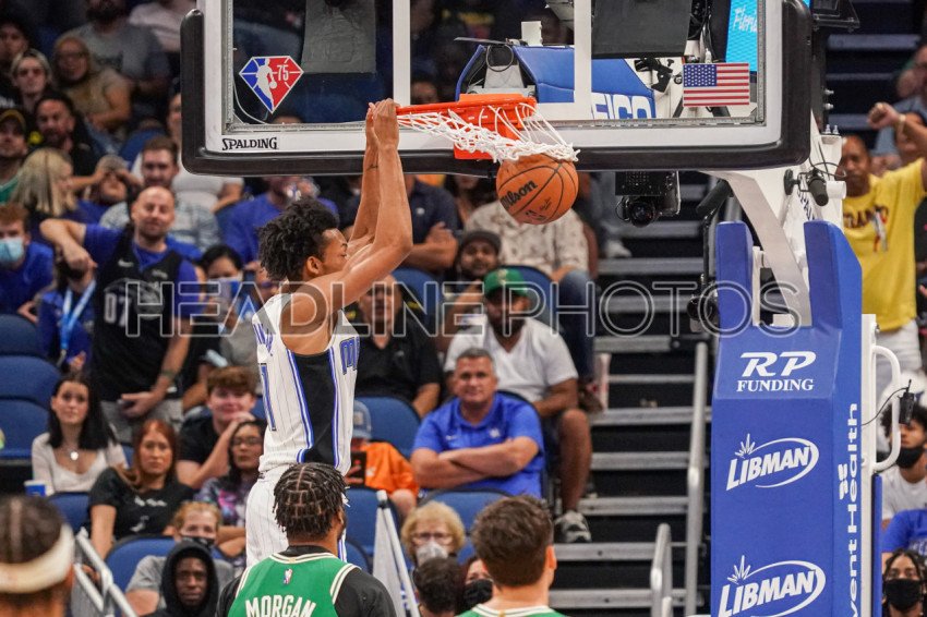 Orlando, Florida, USA, October 13, 2021, Orlando Magic's Jeff Dowtin #11 makes a dunk against the Celtics during the second half at the Amway Center. (Photo Credit: Marty Jean-Louis)