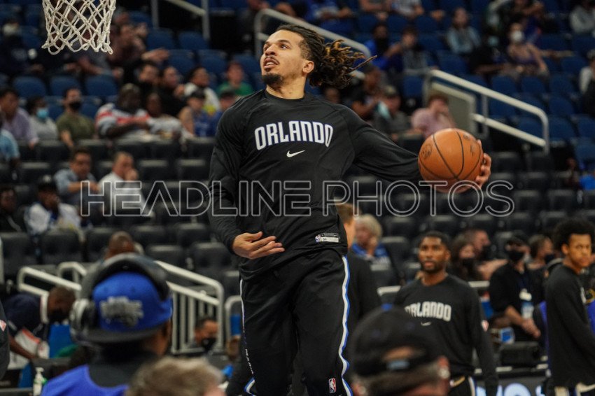 Orlando, Florida, USA, October 13, 2021, Orlando Magic player Cole Anthony warms up before tipoff at the Amway Center. (Photo Credit: Marty Jean-Louis)