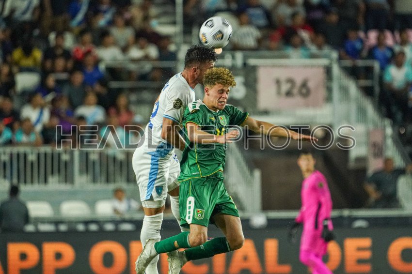 Fort Lauderdale, Florida, USA, July 3, 2021, Guatemala player wins the header during the Concacaf Gold Cup Prelims at Drive Pink Stadium. (Photo Credit: Marty Jean-Louis)