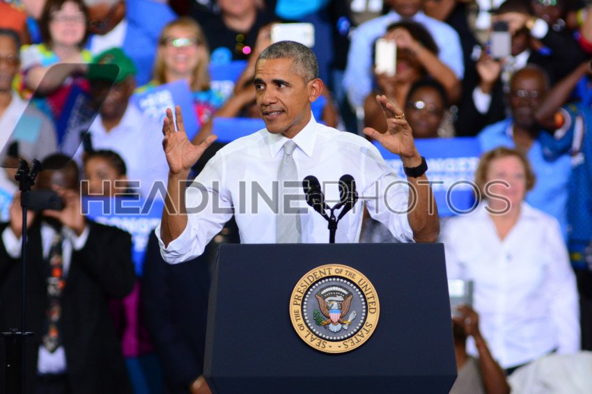 President Barack Obama host a Campaign Rally for Presidential Candidate Hillary Clinton at CFE Arena in Orlando Florida on October 28, 2016. Photo Credit: Marty Jean-Louis