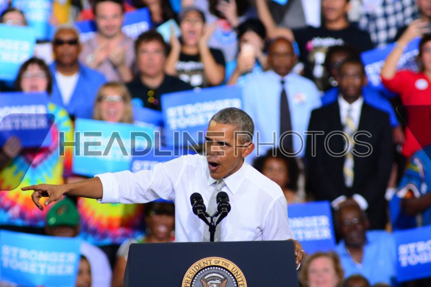 President Barack Obama host a Campaign Rally for Presidential Candidate Hillary Clinton at CFE Arena in Orlando Florida on October 28, 2016. Photo Credit: Marty Jean-Louis