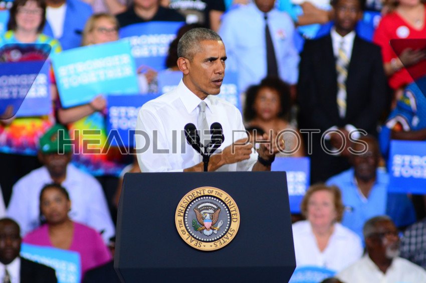 President Barack Obama host a Campaign Rally for Presidential Candidate Hillary Clinton at CFE Arena in Orlando Florida on October 28, 2016. Photo Credit: Marty Jean-Louis