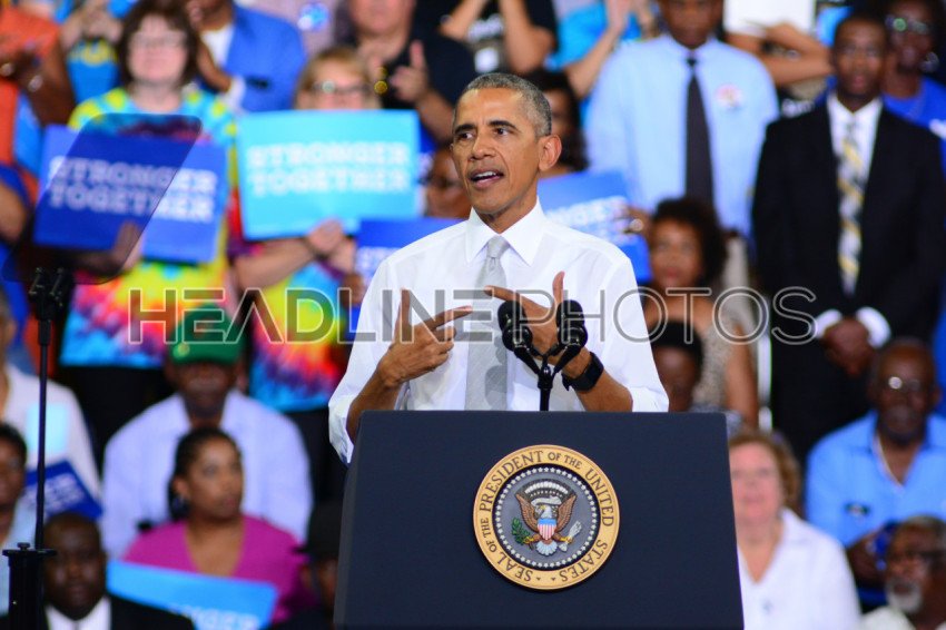 President Barack Obama host a Campaign Rally for Presidential Candidate Hillary Clinton at CFE Arena in Orlando Florida on October 28, 2016. Photo Credit: Marty Jean-Louis