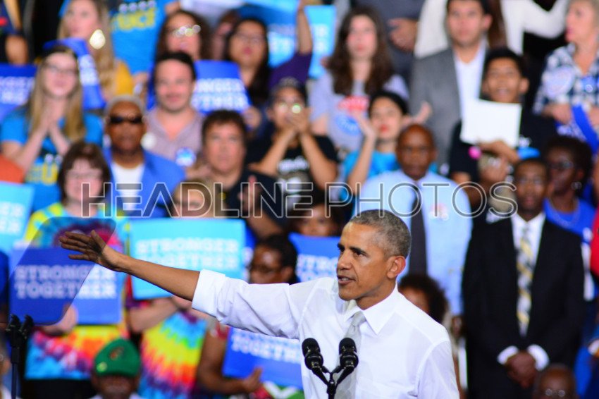 President Barack Obama host a Campaign Rally for Presidential Candidate Hillary Clinton at CFE Arena in Orlando Florida on October 28, 2016. Photo Credit: Marty Jean-Louis