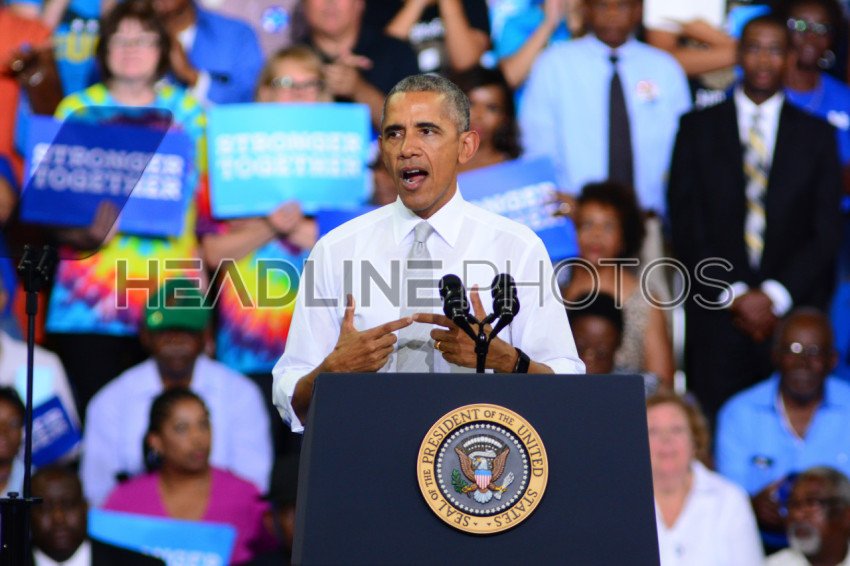 President Barack Obama host a Campaign Rally for Presidential Candidate Hillary Clinton at CFE Arena in Orlando Florida on October 28, 2016. Photo Credit: Marty Jean-Louis