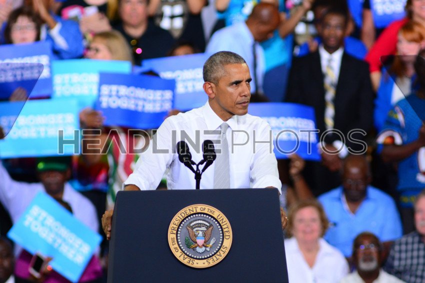 President Barack Obama host a Campaign Rally for Presidential Candidate Hillary Clinton at CFE Arena in Orlando Florida on October 28, 2016. Photo Credit: Marty Jean-Louis