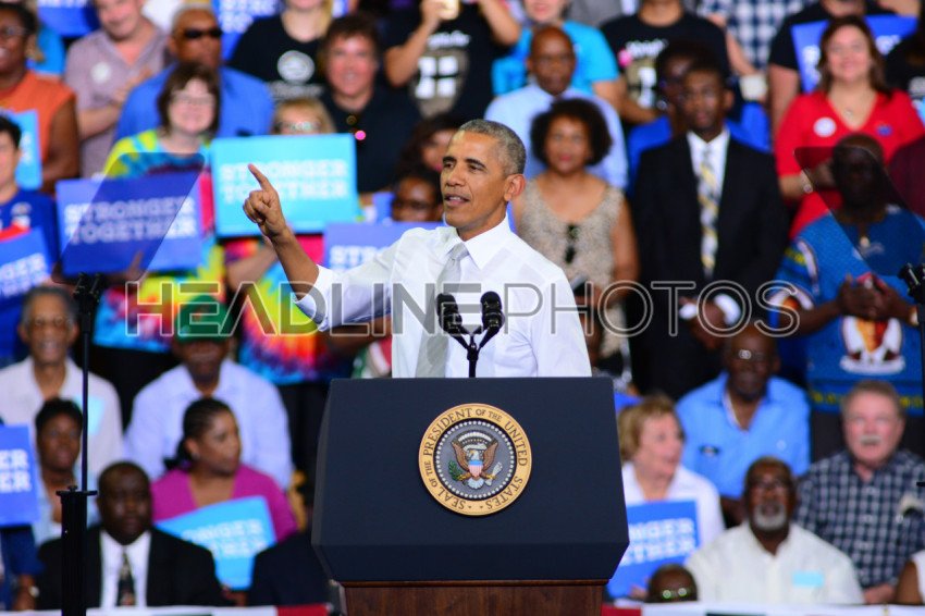 President Barack Obama host a Campaign Rally for Presidential Candidate Hillary Clinton at CFE Arena in Orlando Florida on October 28, 2016. Photo Credit: Marty Jean-Louis