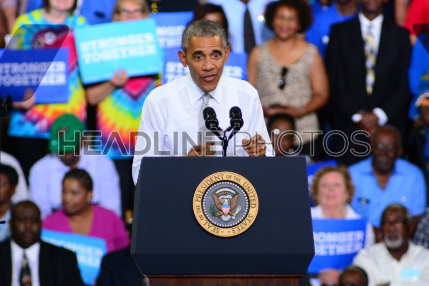President Barack Obama host a Campaign Rally for Presidential Candidate Hillary Clinton at CFE Arena in Orlando Florida on October 28, 2016. Photo Credit: Marty Jean-Louis