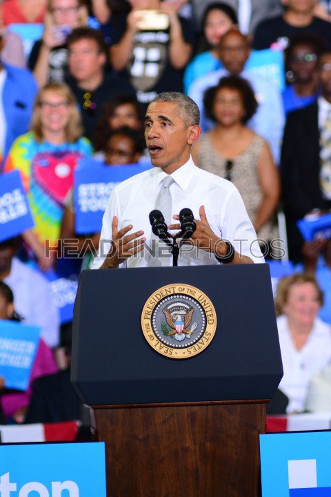 President Barack Obama host a Campaign Rally for Presidential Candidate Hillary Clinton at CFE Arena in Orlando Florida on October 28, 2016. Photo Credit: Marty Jean-Louis
