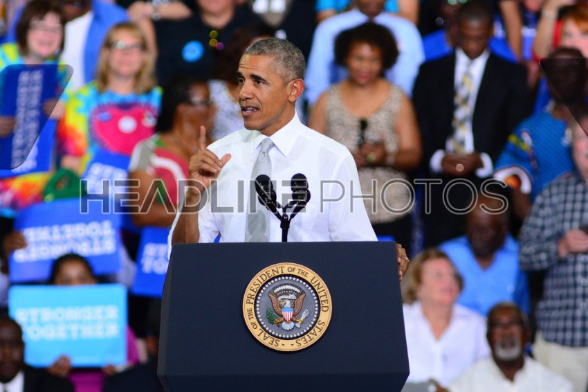 President Barack Obama host a Campaign Rally for Presidential Candidate Hillary Clinton at CFE Arena in Orlando Florida on October 28, 2016. Photo Credit: Marty Jean-Louis