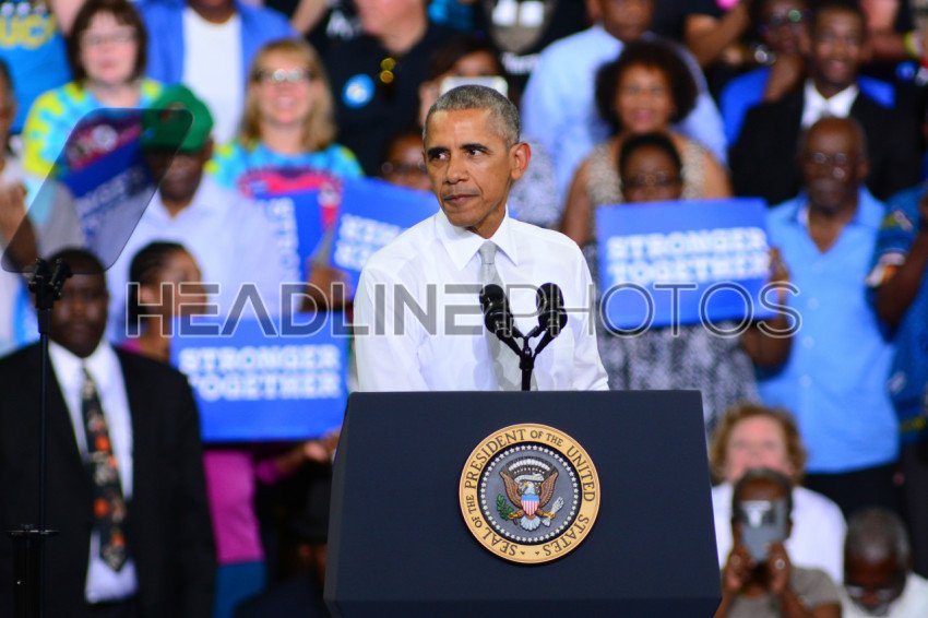 President Barack Obama host a Campaign Rally for Presidential Candidate Hillary Clinton at CFE Arena in Orlando Florida on October 28, 2016. Photo Credit: Marty Jean-Louis