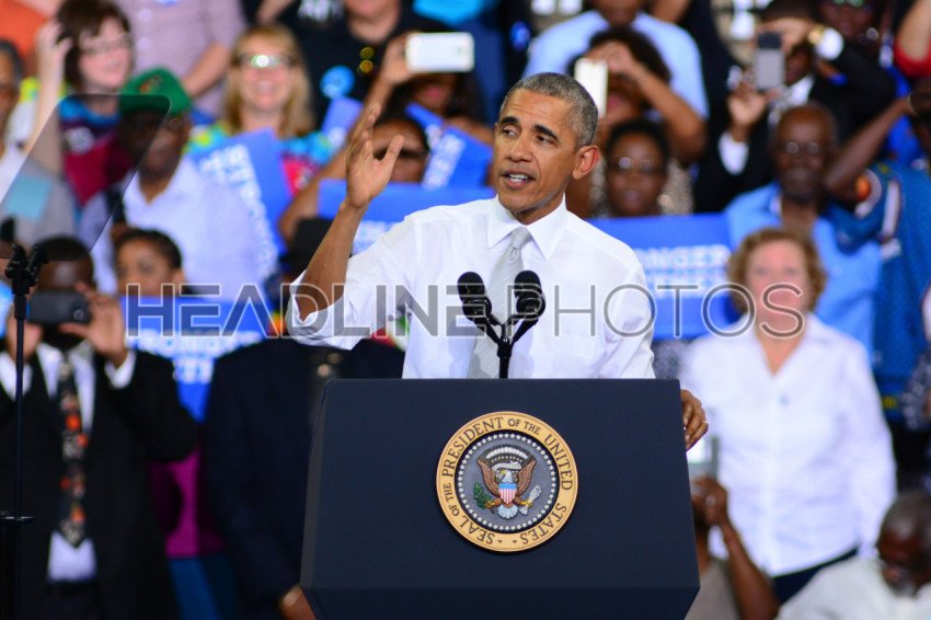 President Barack Obama host a Campaign Rally for Presidential Candidate Hillary Clinton at CFE Arena in Orlando Florida on October 28, 2016. Photo Credit: Marty Jean-Louis