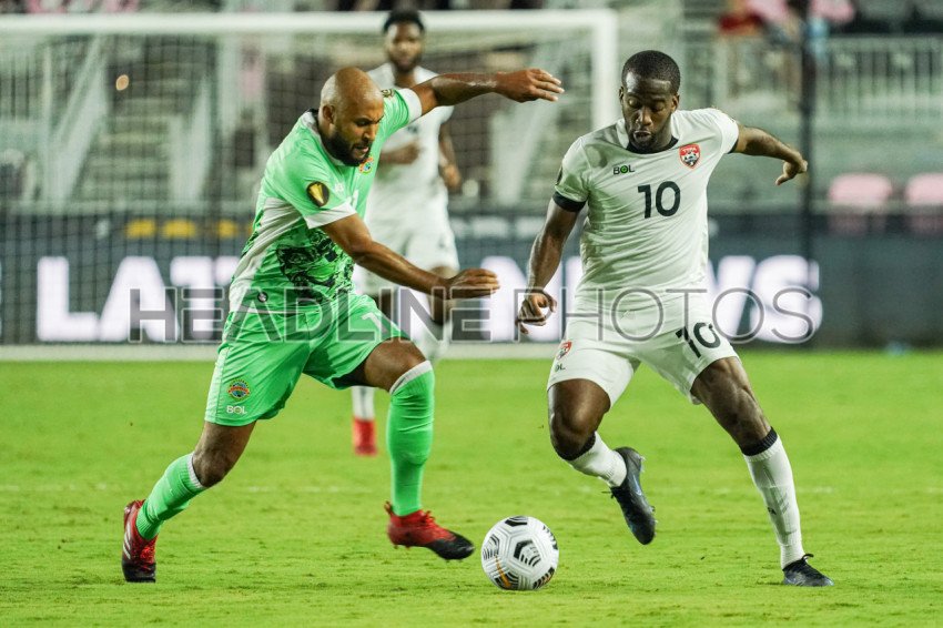 Fort Lauderdale, Florida, USA, July 2, 2021, Trinidad & Tobago Midfielder Kevin Molino #10 fight to keep the ball during the Concacaf Gold Cup Prelims at Drive Pink Stadium. (Photo Credit: Marty Jean-Louis)