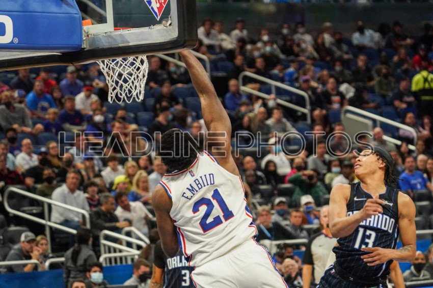 Orlando, Florida, USA, December 30, 2021, Philadelphia 76ers Center Joel Embiid #21 attempt to make a dunk at the Amway Center. (Photo Credit: Marty Jean-Louis)
