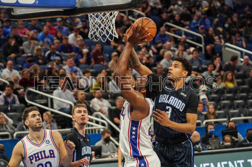 Orlando, Florida, USA, December 30, 2021, Philadelphia 76ers Center Joel Embiid #21 attempt to make a basket during the first half at the Amway Center. (Photo Credit: Marty Jean-Louis)
