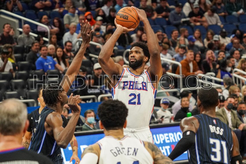 Orlando, Florida, USA, December 30, 2021, Philadelphia 76ers Center Joel Embiid #21 shoots a three point at the Amway Center. (Photo Credit: Marty Jean-Louis)