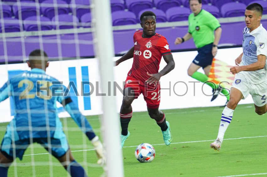 Orlando, Florida, USA, June 19, 2021, Toronto FC defender Richie Laryea #22 looks for teammates as he makes a run at Exploria Stadium. (Photo Credit: Marty Jean-Louis)