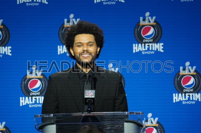 Tampa, Florida, USA, February 4, 2021, The Weeknd answers questions from the press during the Super Bowl LV Half Time Show Press Conference (Photo Credit: Marty Jean-Louis)